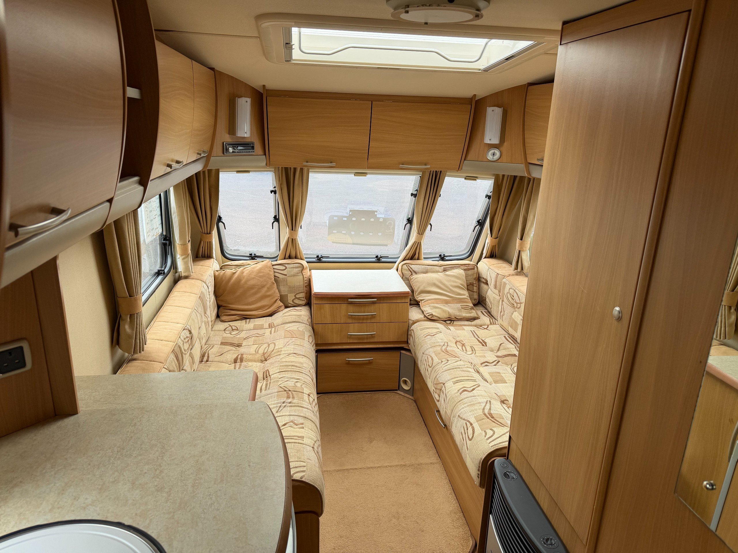 This 2007 Swift Charisma 540 caravan is a spacious 5 berth vehicle, ideal for family holidays or trips with friends. With a length of 7280mm, width of 2230mm, and height of 2700mm, there's plenty of room for everyone to relax and enjoy the journey. The MTPLM is 1500kg, ensuring a smooth and stable ride. Inside, you'll find all the comforts of home, including a wardrobe, hand basin, shower, and cassette toilet. The sunblind allows for added privacy and protection from the sun's rays. Whether you're hitting the open road or setting up camp for a weekend getaway, this Swift Charisma 540 has everything you need for a memorable and enjoyable caravan experience.